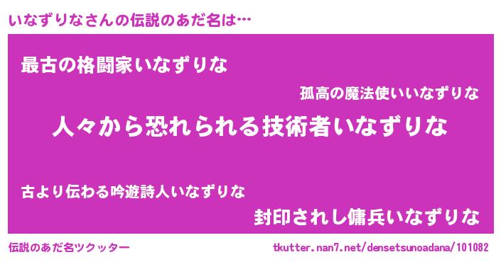 | ヒーロー風カッコイイあだ名 | 『仮面イナダー』『慈愛の使者いなずりな』 |