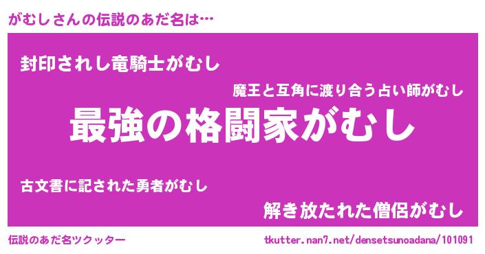 | ヒーロー風カッコイイあだ名 | 『ウルトラがむしマン』『スーパーガムシ』 |