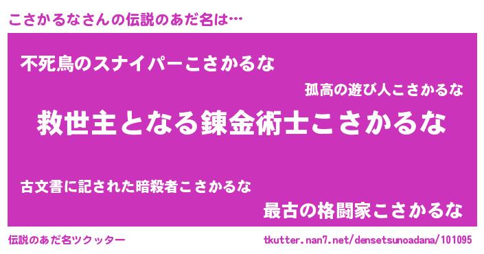 | ヒーロー風カッコイイあだ名 | 『天空の使者こさかるな』『仮面コサダー』 |