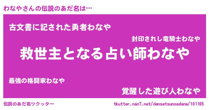 | ヒーロー風カッコイイあだ名 | 『究極戦士ワナヤ』『天空の使者わなや』 |