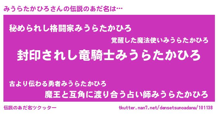 | 男性向けラノベタイトル風あだ名 | 『みうらたかひろに滅ぼされるだけの簡単なお仕事です』 |