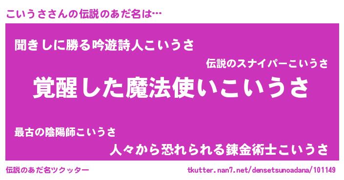 | 意味不明あだ名 | 『とにかく怪しいこいうさ』 |