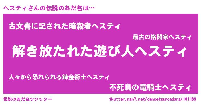 | 意味不明あだ名 | 『とにかく怪しいヘスティ』 |