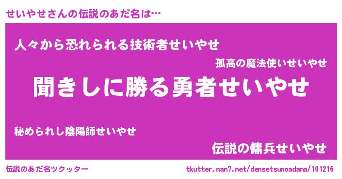 | ヘコむあだ名 | 『せいやせ(震え声)』『せいにー』 |