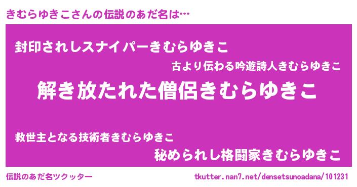 ポケモン風あだ名 | 『ヒキムラユキコ』『キムセウス』 |