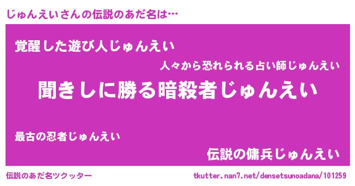 | 胡散臭い通販商品みたいなあだ名 | 『絶対に幸福をもたらす健康食品…その名も「じゅんえい」』 |