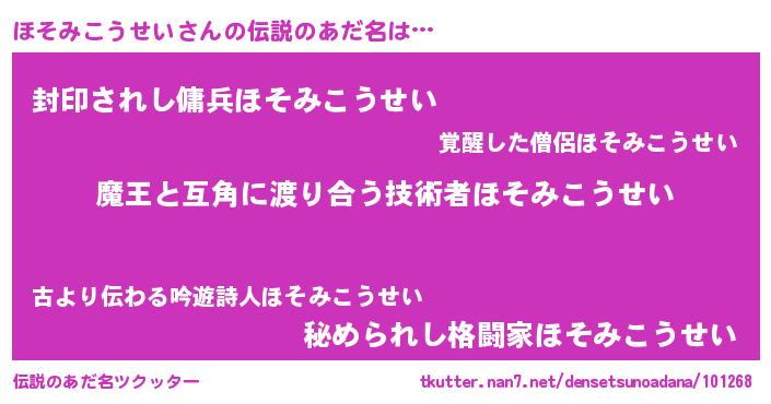 | ヒーロー風カッコイイあだ名 | 『友情の使者ほそみこうせい』 |