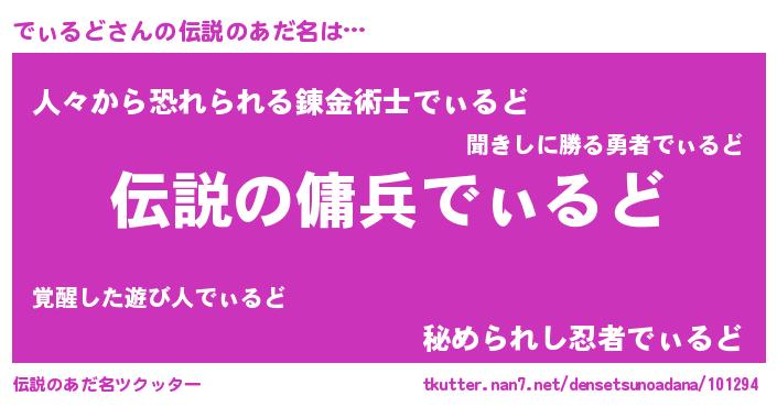 | 女子向けラノベタイトル風あだ名 | 『(仮)でぃるどのやんごとなき事情』 |