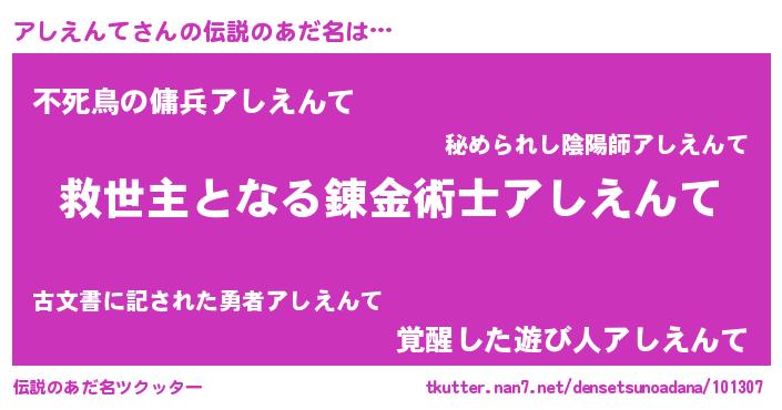 | 意味不明あだ名 | 『自称アしえんて』『ペロリンアしえんて』 |