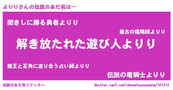 | ヒーロー風カッコイイあだ名 | 『魔戒騎士ヨリ』『ネオヨリリ』 |