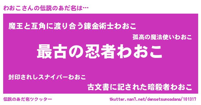 | ヒーロー風カッコイイあだ名 | 『ウルトラわおこマン』『愛の使者わおこ』 |