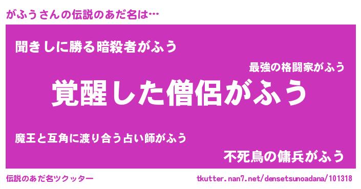 | 女子向けラノベタイトル風あだ名 | 『がふう様がみてる』『がふう伯爵の花嫁』 |