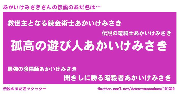 | 女子向けラノベタイトル風あだ名 | 『あかいけみさきは平凡を望む』 |