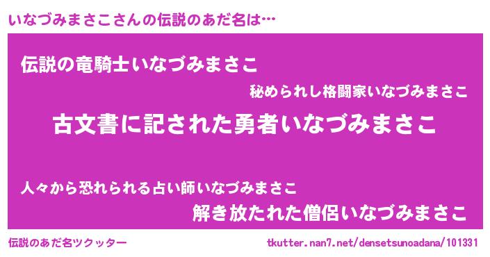 | 男性向けラノベタイトル風あだ名 | 『Re:いなづみまさこから始める異世界生活』 |