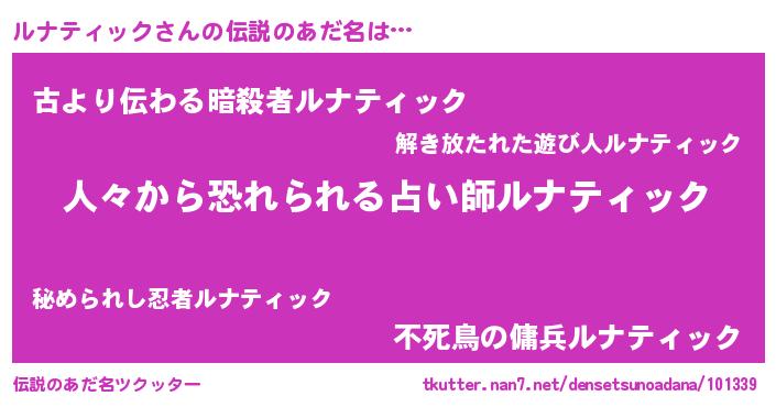 | 意味不明あだ名 | 『自称ルナティック』 |