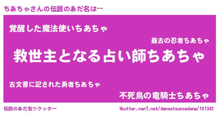 | ポケモン風あだ名 | 『チックウザ』『ヒチアチャ』 |