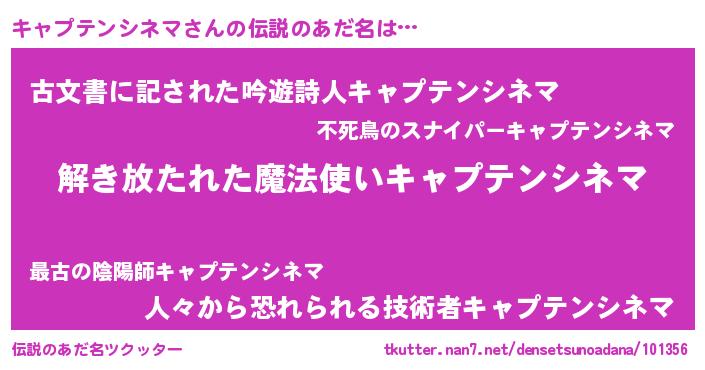 | 意味不明あだ名 | 『とにかく怪しいキャプテンシネマ』 |