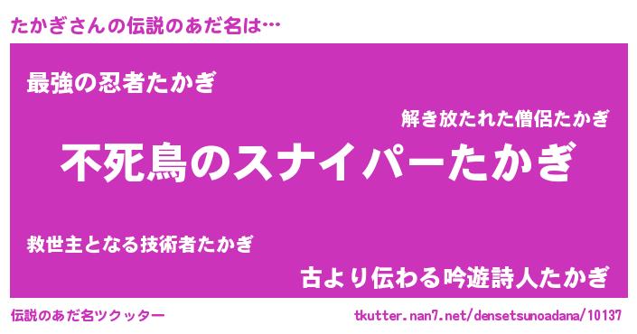 | ファンタジー風あだ名 | 『タカフェル』『エターナルタカギー』 |