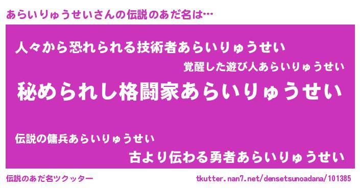 | 欧米人風あだ名 | 『アンジェラ・あらいりゅうせい』 |