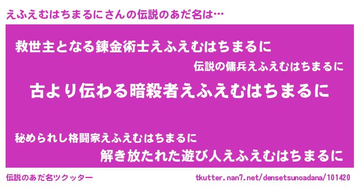 | 意味不明あだ名 | 『永久保存えふえむはちまるに』 |