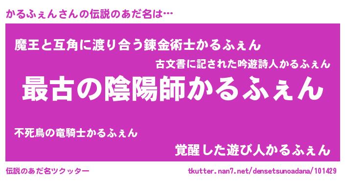 | 男性向けラノベタイトル風あだ名 | 『この素晴らしい世界にかるふぇんを!』 |