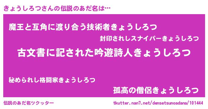 | 意味不明あだ名 | 『自称きょうしろつ』 |
