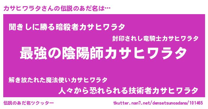 | 女子向けラノベタイトル風あだ名 | 『カサヒワラタの婚約者』 |