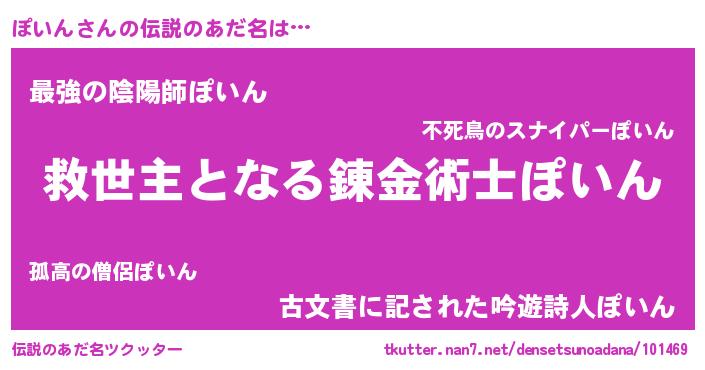 | ヒーロー風カッコイイあだ名 | 『天空の使者ぽいん』『究極戦士ポイン』 |