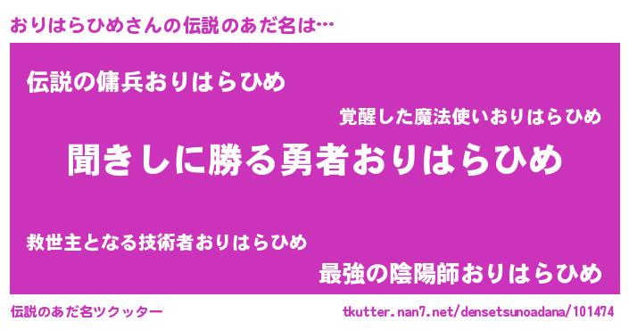| ヒーロー風カッコイイあだ名 | 『ネオオリハラヒメ』『仮面オリダー』 |