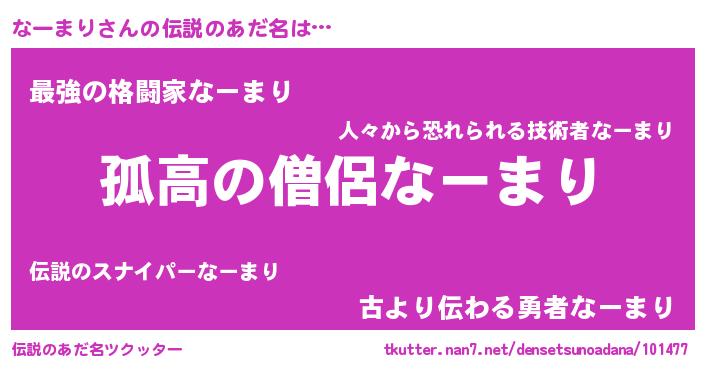 | 女子向けラノベタイトル風あだ名 | 『なーまりは平凡を望む』 |