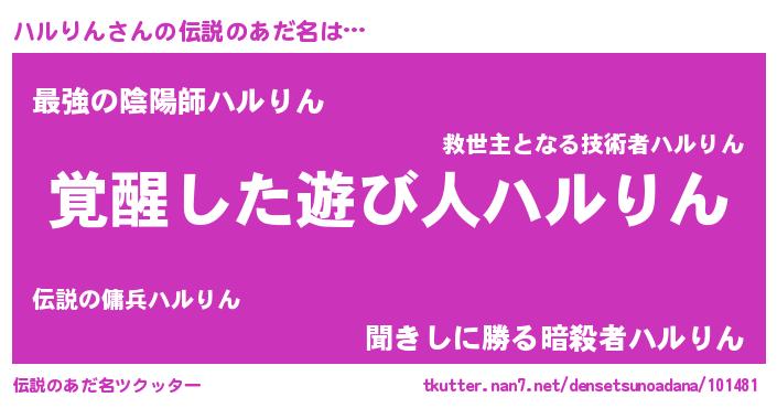 | ヒーロー風カッコイイあだ名 | 『幻影騎士ハル』『超時空戦士ハルリン』 |