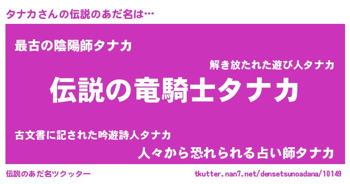| 男性向けラノベタイトル風あだ名 | 『タナカの憂鬱』『魔弾の王とタナカ』 |