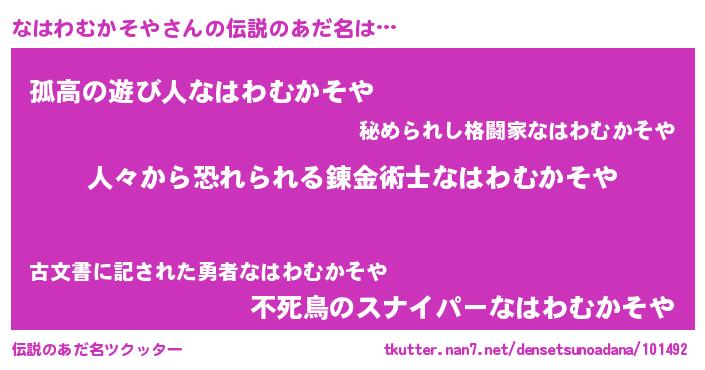 | ヒーロー風カッコイイあだ名 | 『正義の使者なはわむかそや』 |