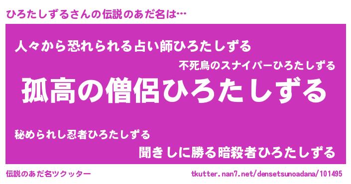 | ヒーロー風カッコイイあだ名 | 『暗黒騎士ヒロ』『ネオヒロタシズル』 |