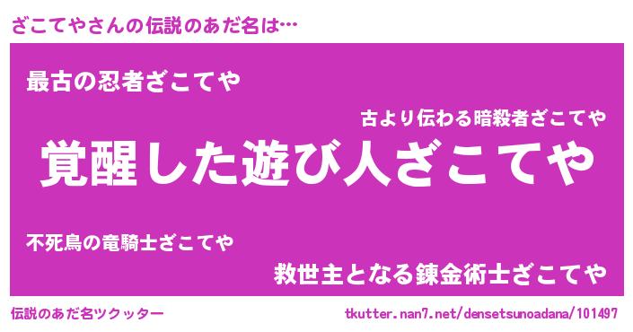 | ヒーロー風カッコイイあだ名 | 『天弓騎士ザコ』『サイバー戦士ザコテヤ』 |