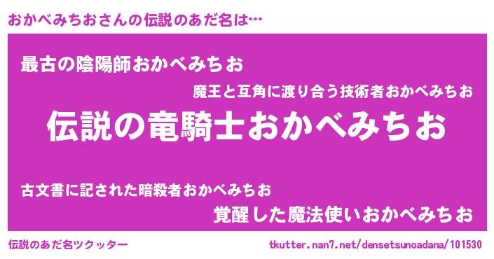 | 女子向けラノベタイトル風あだ名 | 『(仮)おかべみちおのやんごとなき事情』 |