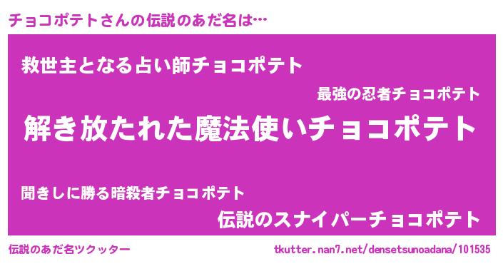 | 胡散臭い通販商品みたいなあだ名 | 『伝統あるサプリメント…その名も「チョコポテト」』 |