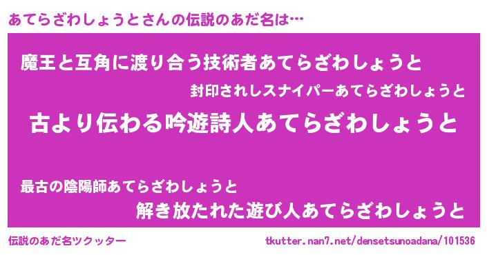 | 意味不明あだ名 | 『永久保存あてらざわしょうと』 |