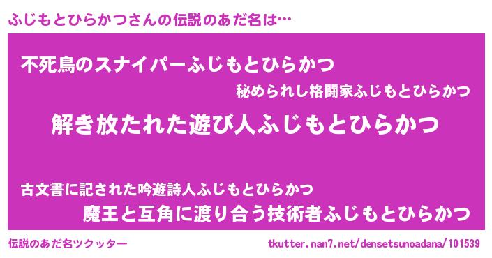| 男性向けラノベタイトル風あだ名 | 『転生したらふじもとひらかつだった件』 |