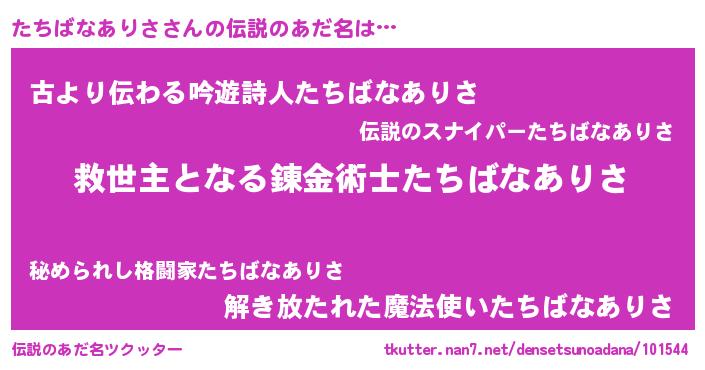 | ヒーロー風カッコイイあだ名 | 『慈愛の使者たちばなありさ』 |