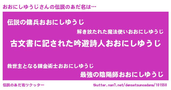 | 意味不明あだ名 | 『住所不定無職おおにしゆうじ(13歳)』 |