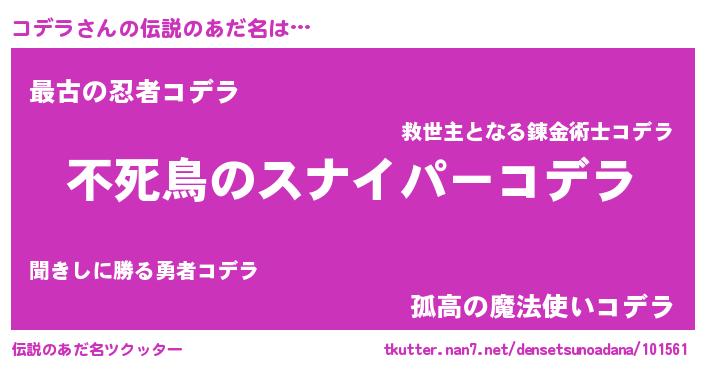 | ファンタジー風あだ名 | 『コデフェル』『エターナルコデラー』 |