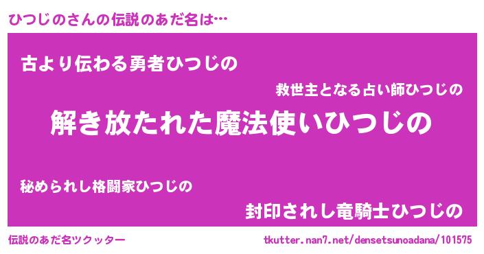 | ヒーロー風カッコイイあだ名 | 『仮面ヒツダー』『銀牙騎士ヒツ』 |