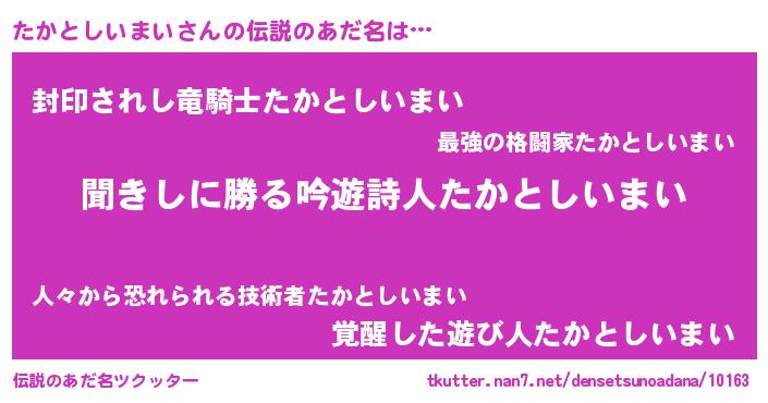 | 意味不明あだ名 | 『永久保存たかとしいまい』 |