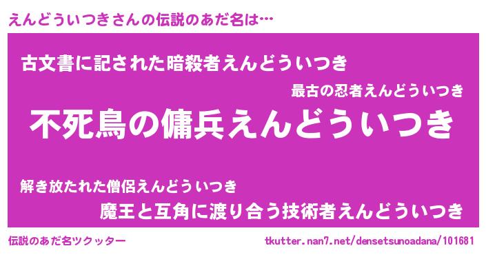 | ヘコむあだ名 | 『えんにゅー』『えんどういつき(笑)』 |