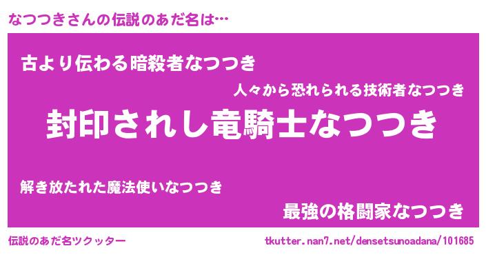 | 肩書あだ名 | 『なつつき社長』『なつつき大尉』 |