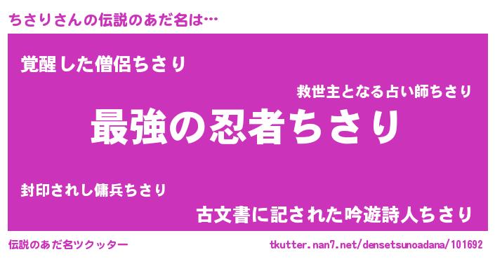 | ヒーロー風カッコイイあだ名 | 『ウルトラちさりマン』『天弓騎士チサ』 |