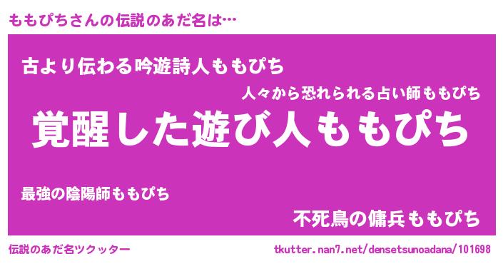 | 意味不明あだ名 | 『ヨモギ科ももぴち属』 |