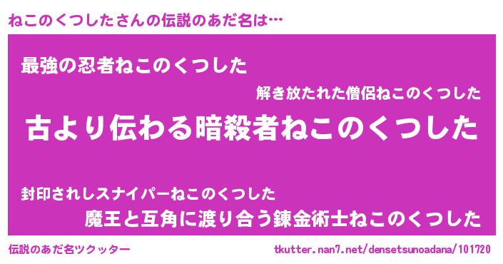 | 意味不明あだ名 | 『永久保存ねこのくつした』 |