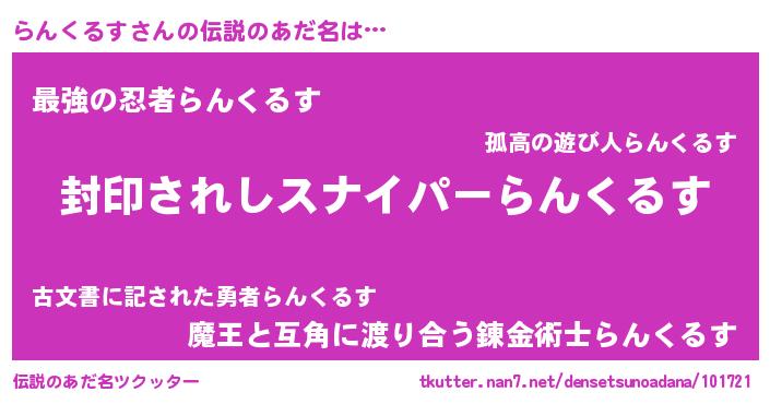 | 意味不明あだ名 | 『ペロリンらんくるす』『自称らんくるす』 |